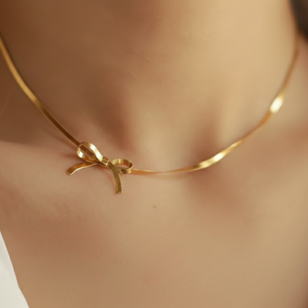 Elegant bow-design necklace paired with a smooth snake chain finish. Lightweight, stylish and perfect for daily wear, parties or gifting. Includes FREE gift.