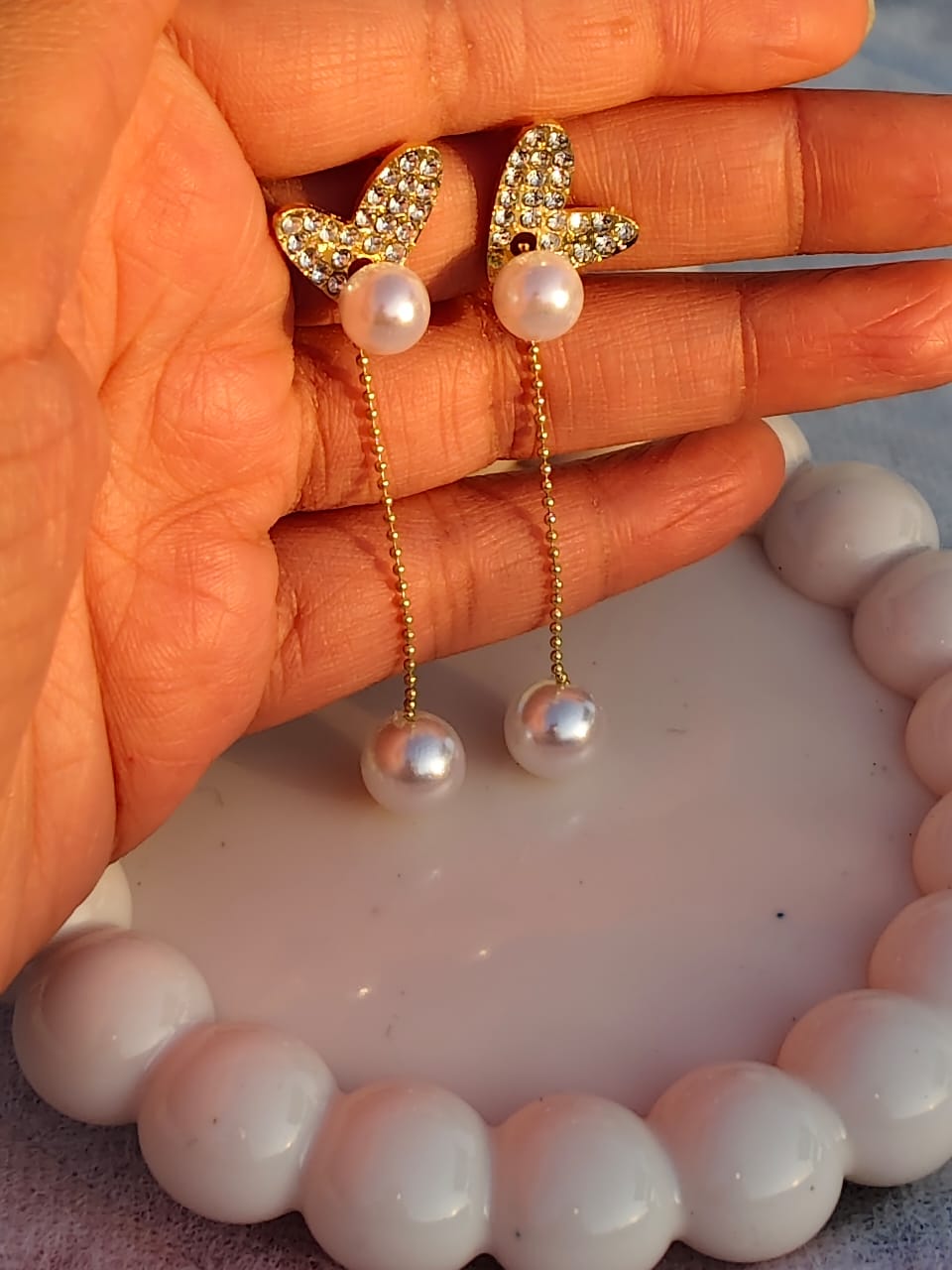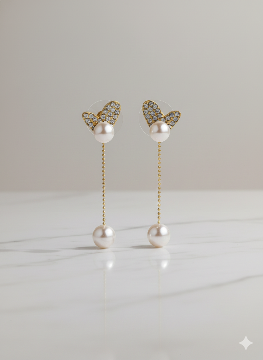 Graceful pearls-beaded heart-shaped drop earrings with a delicate shine. Lightweight and elegant for daily or festive wear. Includes a FREE gift.