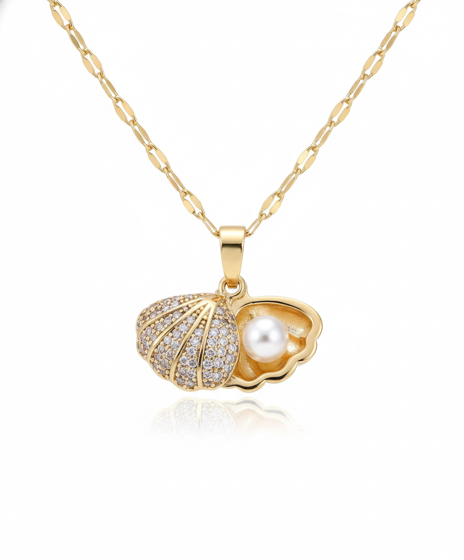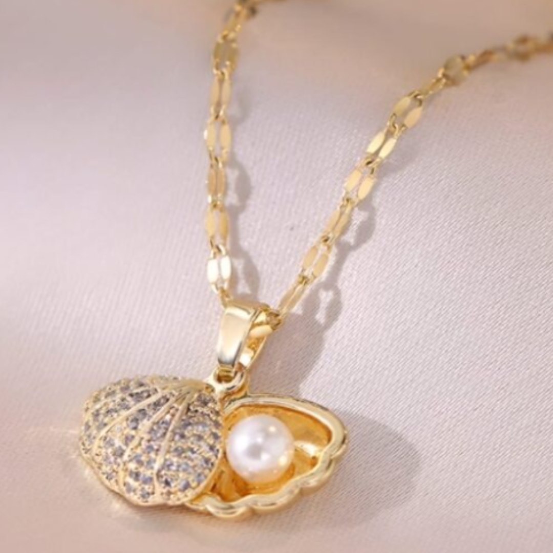 Elegant golden-tone necklace featuring a smooth shell pearl for a timeless look. Lightweight, stylish, and perfect for everyday or occasion wear.